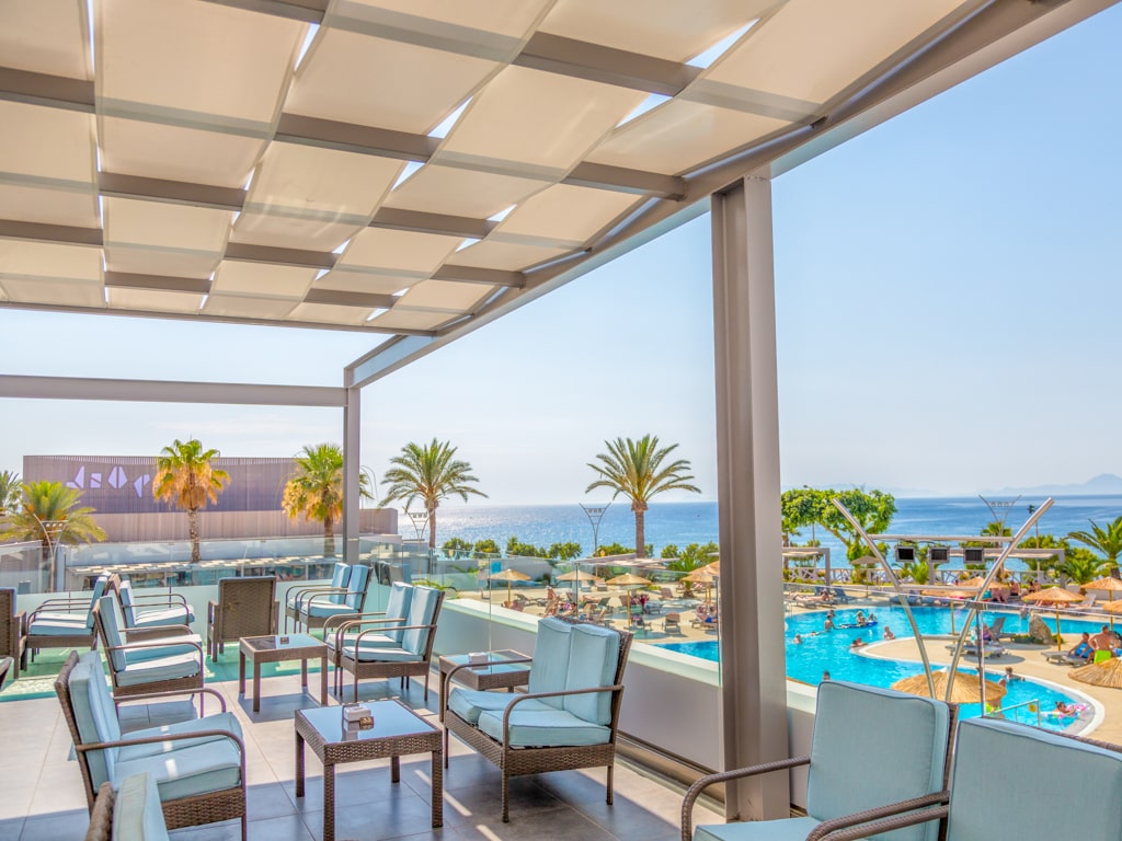 Fra poolområdet ned til stranden løber en praktisk tunnel under vejen, så du hurtigt og sikkert kan komme til og fra hotelområdet. Stranden i Ixia inviterer til dristige dyk i det ofte bølgede turkise vand.