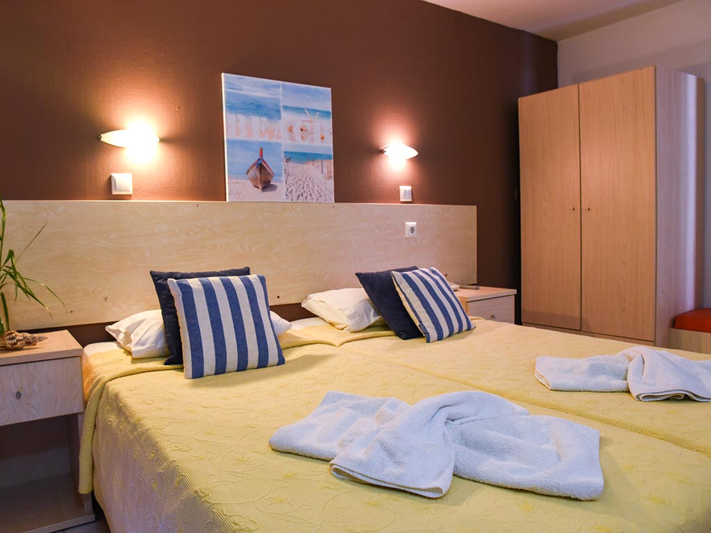 Værelserne er enkelt indrettet, og har alle balkon. Der er gratis wifi over hele hotellet og på værelserne.