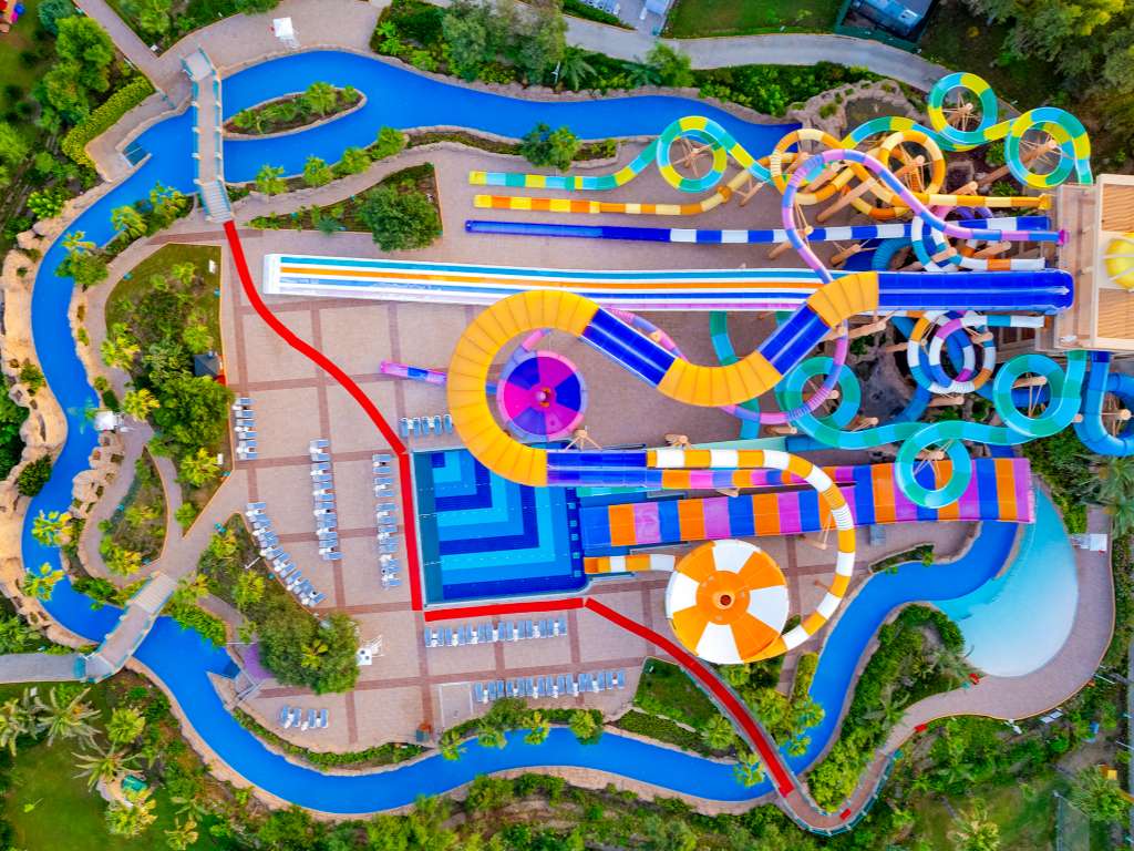 For adrenalinjunkierne har hotellet også to vandlande – et med syv vandrutsjebaner til mindre børn og et vandland med ni vandrutsjebaner for unge og voksne fra 12 år. Rundt i det store vandland slinger en lazy river sig, hvor du kan flyde rundt og nyde solen. Der er også et sjovt legeområde med skridsikker belægning, vandsprøjtende fontæner og andre forhindringer – med andre ord perfekt for mindre børn at lege og boltre sig på.