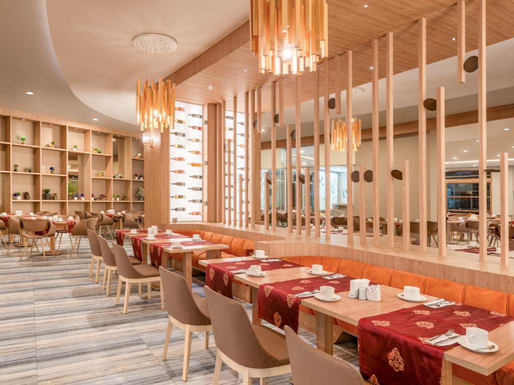 Delphin Be Resort har et fantastisk All Inclusive-program. I hovedrestauranten serveres alle dagens hovedmåltider i form af store, varierede buffeter med forskellige teamer. Det flotte lokale er opdelt i mindre sektioner, hvilket skaber en hyggelig atmosfære og mindsker dertil lydniveauet i restauranten.
