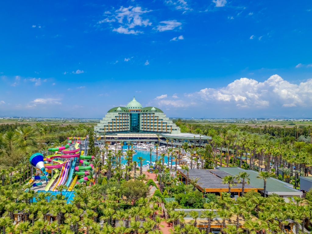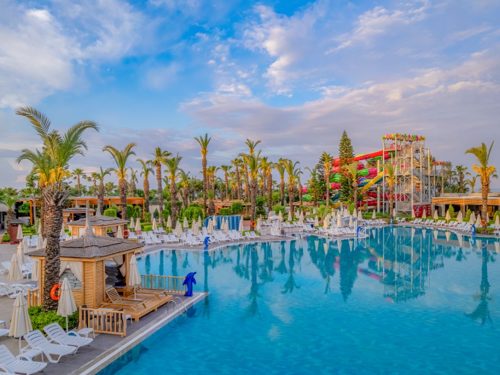 Et af Lara Beachs mest etablerede og populære luksushoteller – nu i Nazars program. Delphin Palace gennemgik en omfattende renovering i 2025. Her venter et stort poolområde, en farverig vandpark og masser af feriestemning. Stranden nedenfor hotellet og den lange mole byder på skønne soltimer ved havet, børnene trives i den internationale børneklub (4–12 år) og i det populære minitivoli. Den korte transfer fra lufthavnen gør rejsen enkel for både familier og par.