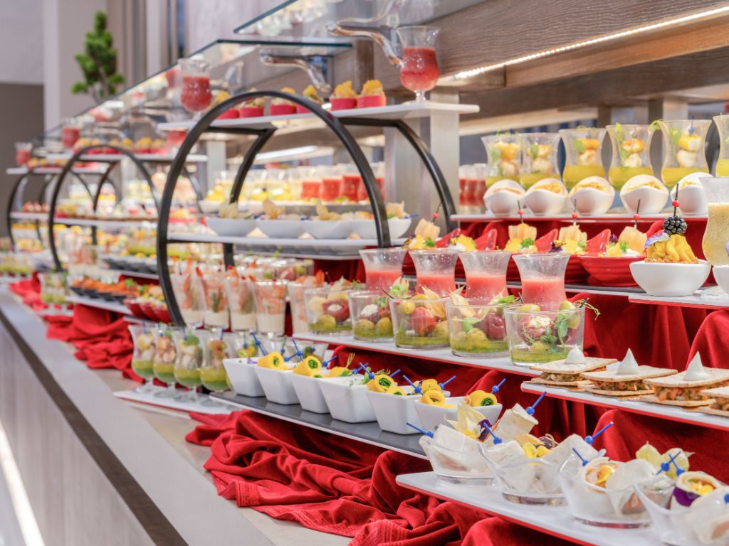 Buffeterne er opbygget som små kulinariske kvarterer, nybagt, grillet, sprøde salater og meze, velsmagende varme retter og smukt anrettede desserter. Begynd morgenen med friskpresset appelsinjuice og nyd varierede frokost- og middagstemaer i løbet af ugen. Her møder buffetmåltider en fine dining-fornemmelse: indbydende anretning, roligere siddeområder og opmærksomt personale, der sørger for, at alt glider smidigt.
