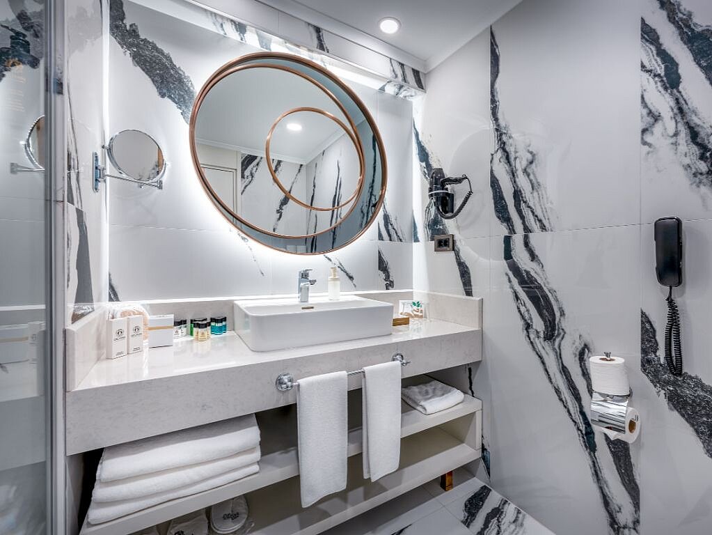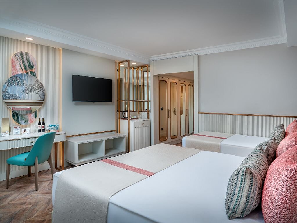 Alle værelser har balkon, central aircondition, tv, safeboks, minibar, der fyldes op dagligt, laminatgulv eller klinker og elkedel. På badeværelserne findes brusekabine og hårtørrer. Wi-Fi er gratis på værelserne.
