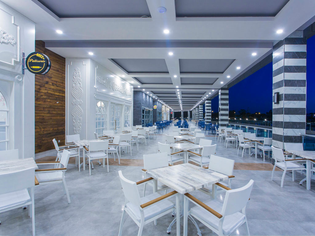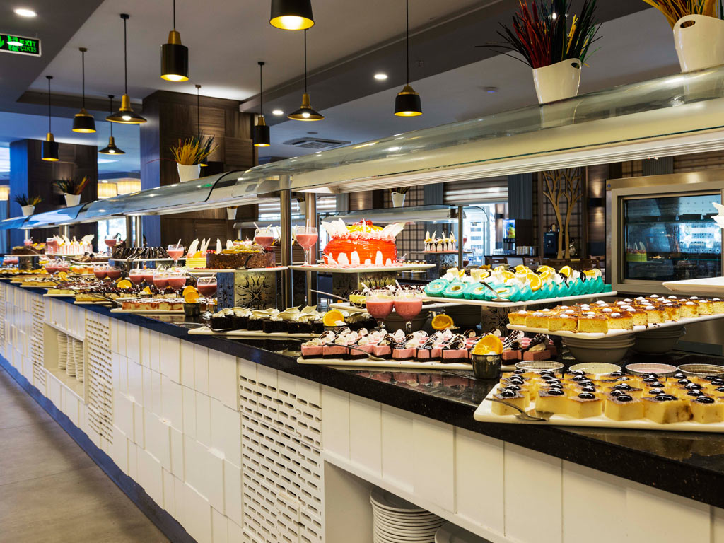 På Eftalia Ocean behøver du aldrig at gå sulten rundt – her er der praktisk All Inclusive, der gælder! Morgenmad, frokost og middag serveres som buffeter i hovedrestauranten. Nogle dage afholdes også festlige temaaftener, som for eksempel tyrkisk aften, der sætter sit præg på både serveringen og buffetudbuddet.