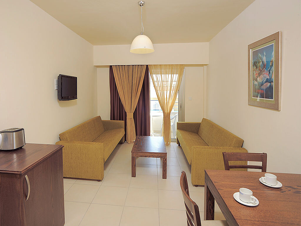 Vil du ud at se dig lidt omkring på ferien, så er der restauranter og butikker i det nærmeste centrum, som ligger cirka 60 meter fra hotellet. Tag også en lidt længere tur og oplev alt det, Ayia Napa har at byde på af madoplevelser, natlig underholdning, glitrende badebugter og shopping.