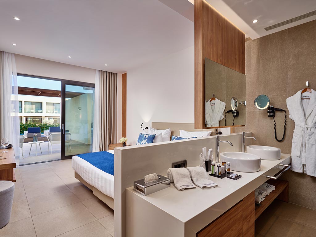 Gennadi Grand Resorts’ sofistikerede værelser er en perfekt kombination af komfort og moderne design. De store og minimalistiske værelser er en cool oase at slappe af i under din solrige ferie. Alle værelser har stengulv.