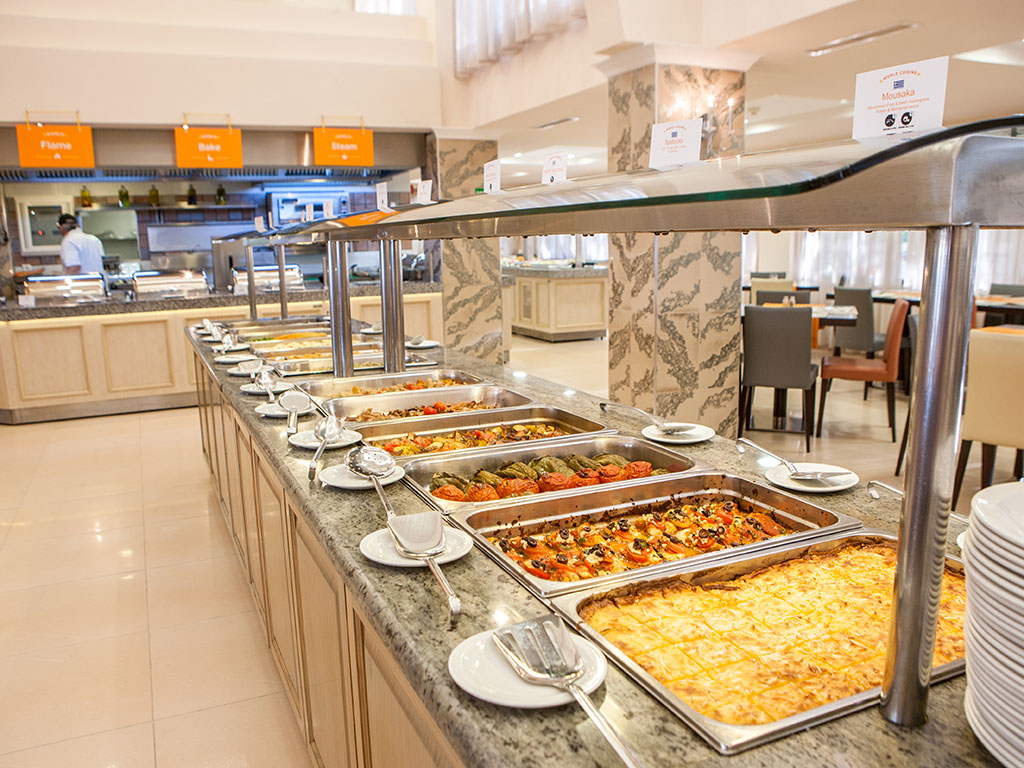 Hotellet tilbyder en solid morgen-, frokost- og middagsbuffet. Alt følger hotellets eget All Inclusive-koncept med amerikansk tema. Snacks og lettere retter serveres i poolbaren.