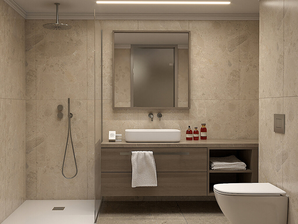 Standområdet er lettere kuperet, rustik og autentisk, og både i vand og på land er der store klippeformationer. Der er trapper både for at komme ned til stranden, og også for at komme i vandet, så det egner sig ikke til gangbesværede.