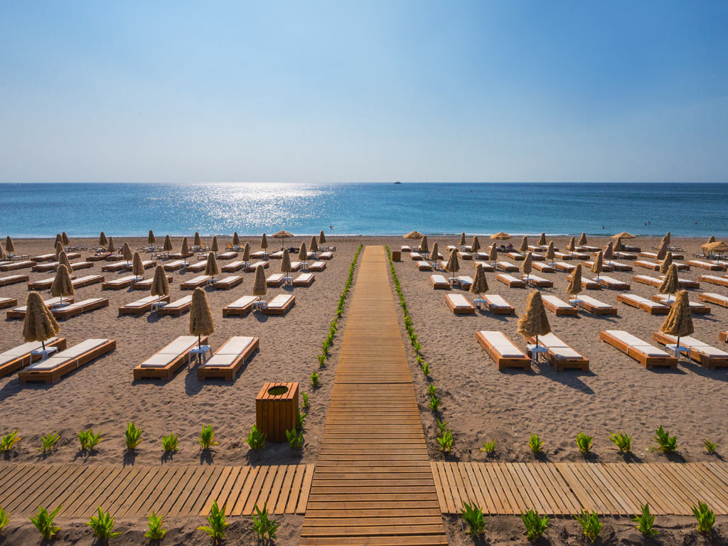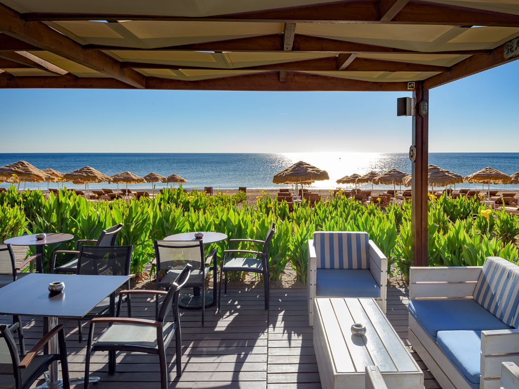 Stranden ligger ca. 250 meter fra hotellet – det er en dejlig sandstrand med få småsten. Der er en kort gåtur dertil via hotellets private tunnel, men du kan selvfølgelig også vælge at tage golfbilen, som kører hvert tyvende minut. Her er en strandbar, som serverer mad og drikkevarer mod betaling.