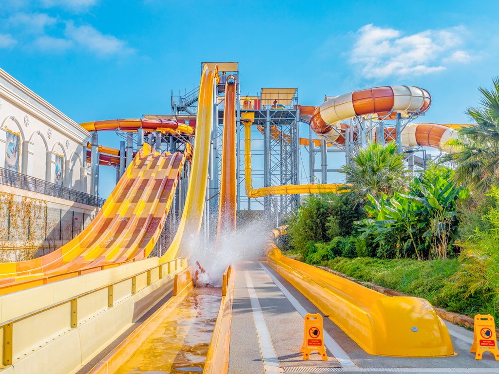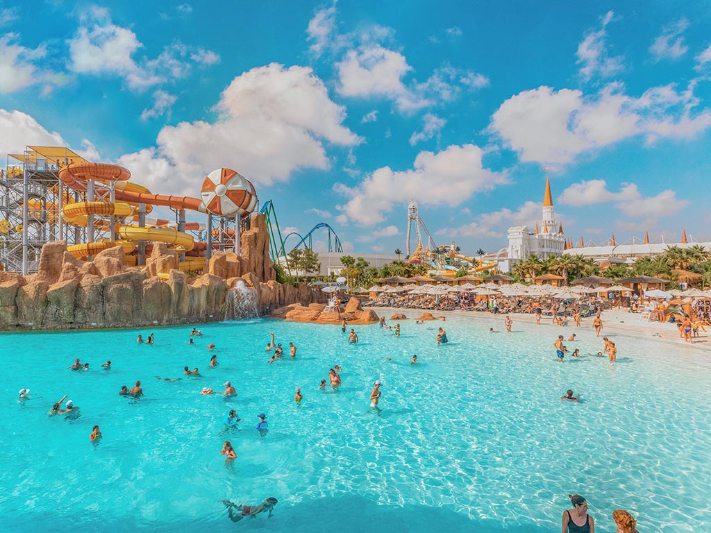 Her er masser af dejlige pools, og et væld af vandsprøjtende vandrutsjebaner, som både vil udfordre de vovelystne og vandglade. Hold tungen lige i munden og lær at stå oprejst på surfbrættet, eller tag på dykkertur i det store akvarie.