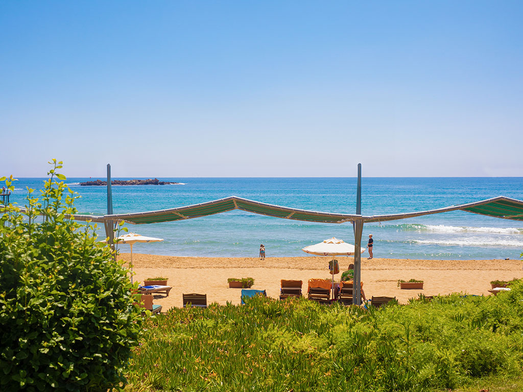 Pegasos Club ligger præcis ved en lang, finkornet, gylden sandstrand som er børnevenlig og lavvandet. Strander byder derudover på flotte solnedgange over havet. Ved stranden ligger en stor, action-pakket wipeout-bane – en bane bestående af oppustelige udfordringer som flyder på vandet. Den kan anvendes helt gratis af alle Nazar-gæster! Banen er åben under højsæsonen, med undtagelser ved dårlige vejrforhold