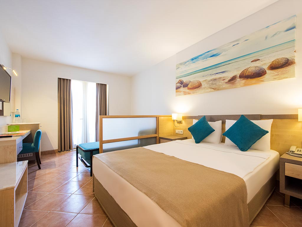 Pegasos Club er et familiehotel med 417 værelser. Alle værelser er funktionelt og lyst indrettede og har udsigt mod land, poolområdet eller delvist af havet. Værelserne har laminatgulv eller gulvtæppe.