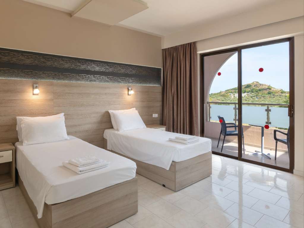 Dobbeltværelset er 20 m² og har to rigtige sengepladser, hver måler 90x190 cm. Værelset kræver mindst to fuldt betalende og har plads til maks. to voksne. Udsigt til haven. Du kan vælge at opgradere til pooludsigt mod tillæg. Værelset kan bookes som enkeltværelse mod tillæg.