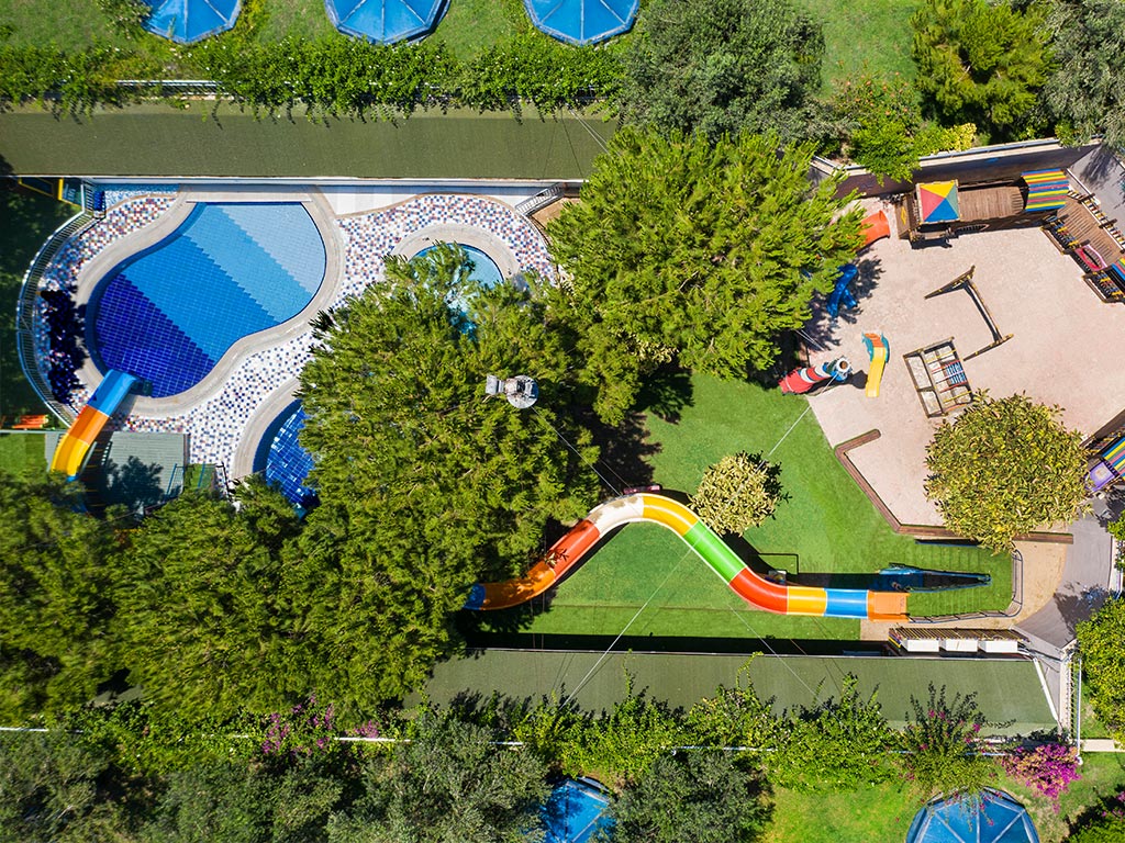 Ikke langt fra børneklubben ligger hotellets eget vandland med seks sjove vandrutsjebaner, som er særdeles populære blandt både store og små.