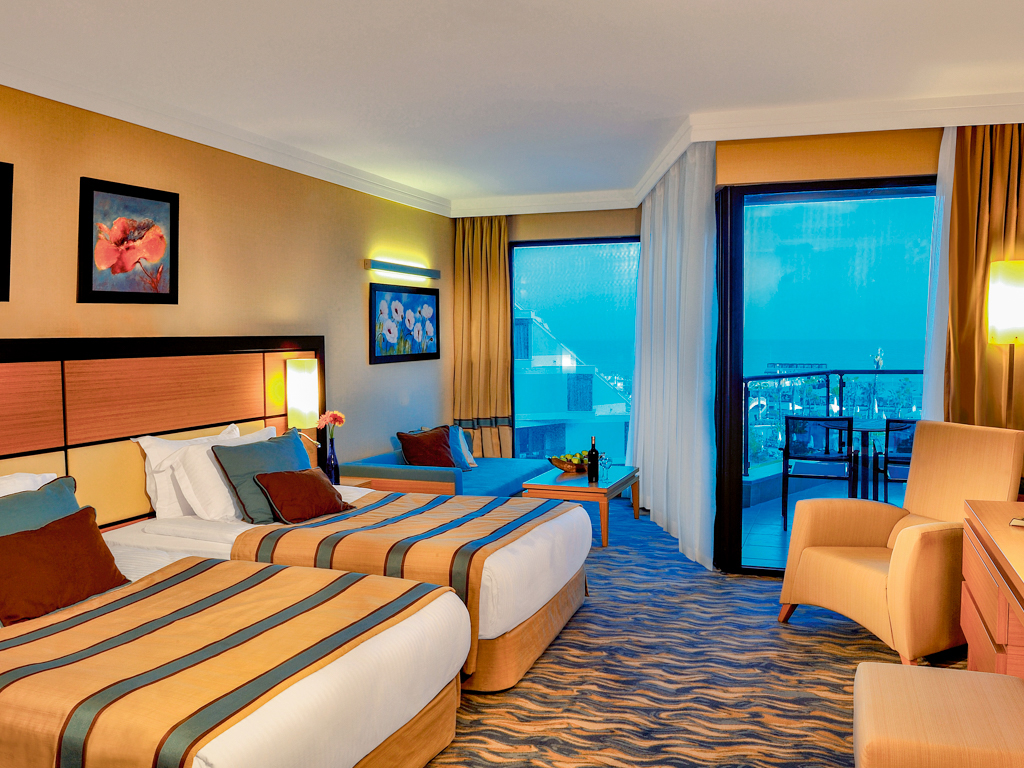 Alle værelserne har central aircondition, balkon eller terrasse, elkedel med te og kaffe, morgenkåbe, badetøfler, telefon, minibar, safety boks og tv. Minibaren er omfattet af All Inclusive-programmet og fyldes dagligt med sodavand og vand. Typen af gulv varierer mellem gulvtæppe, laminatgulv og en kombination af disse to typer. På badeværelserne er der enten badekar eller brusekabine samt føntørrer.